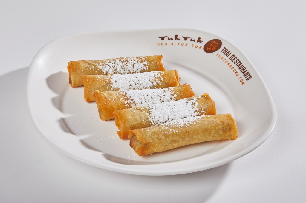 Crispy egg rolls filled with cabbage, carrots, bean thread noodles and celery