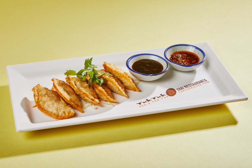 Tuk Tuk’s basil chicken in bite sized dumplings with basil sauce